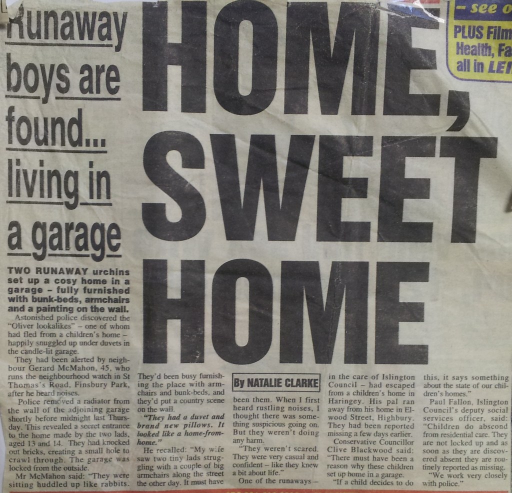 ‘There must be a reason why these children set up home in a garage. If a child decides to do this it says something about the state of our children’s homes.’ Clive Blackwood Islington conservative councillor.