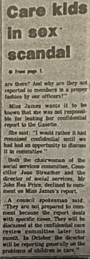 ‘There was quite clearly inadequate segregation of the sleeping quarters of the sexes, inadequate supervision and unsatisfactory discipline.’ One of the 16 year old boys already had 47 charges including of assault and had been in institutions since the age of 6. The other also had convictions for robbery and assault. The judge said they both had ‘sad’ backgrounds. The Director of Social Services, John Rea Price, said that there was a lack of senior experienced staff in the home. The superintendent have been on extended sick leave and the home lacked one assistant and 2 group leaders. He said that younger children now go to foster parents leaving many precocious and difficult adolescents and young offenders in the home and many are sexually experienced. He said the buildings did not allow for segregation of the girls and boys.