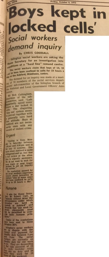 Ashford Remand Centre Islington Gazette, 22.09.1972 Islington Gazette, 22.09.1972 Islington Gazette, 17.11.1972 Share this: Click to share on X (Opens in new window) X Click to share on Facebook (Opens in new window) Facebook Click to share on Reddit (Opens in new window) Reddit Click to share on Pinterest (Opens in new window) Pinterest Click to share on WhatsApp (Opens in new window) WhatsApp Like Loading...
