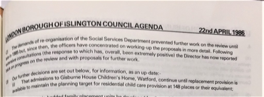 Gisburne House was built in Watford, Hertfordshire in 1912 as an industrial school for girls. The photo above on the left is from a World in Action (1977) programme – the one on the right was taken by a residential care worker in 1985. In 2017, Islington Council officials have no knowledge of Gisburne House and no documentation of any kind about it. When we ask them to check names of staff alleged to be abusive, it seems these staff have vanished into thin air. It is as if all corporate memory of 30 years, and hundreds of childrens lives, has been erased.