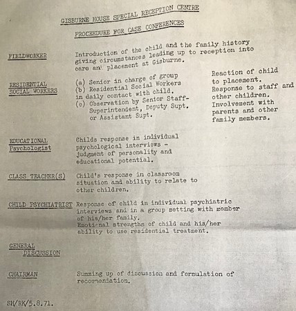 The social worker’s role is specified in this Gisburne leaflet (1971) as introductory. It was very poor practice for the residential staff to convene conferences which should have been organised by a senior field social worker from the Islington area social work teams. The managers at Gisburne would take control of the care planning and chair the conferences (this leaflet demonstrates the staff at Gisburne deciding who needed to attend which should have been a fieldwork decision) and this gave some of the abusers inappropriate power in decision making. The social workers would be often told by Gisburne managers that they did not need to attend and they seemed to assume that the residential control was acceptable. Because of this ongoing practice important checks and balances were not in place for the children. Ian White commented in his 1995 Inquiry that too much power was given to the residential workers.