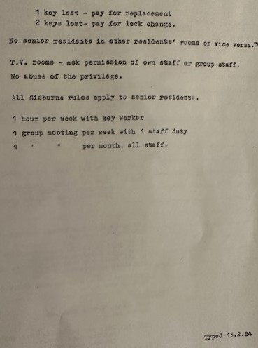 This total is an underestimate as file entries frequently only provide a first name particularly on the Gisburne House log books of which just a few have been located and added to the survivor’s files. These provide a detailed insight into the daily routines at Gisburne House. Through the years there were a number of married couples working as staff in Gisburne House. One manager also lived with one of the women staff in his upstairs flat. The involvement of trainees enabled a fast turnover of very young inexperienced staff who felt lacking in confidence to challenge the abusive regime and to do so would surely have impacted on their training.
