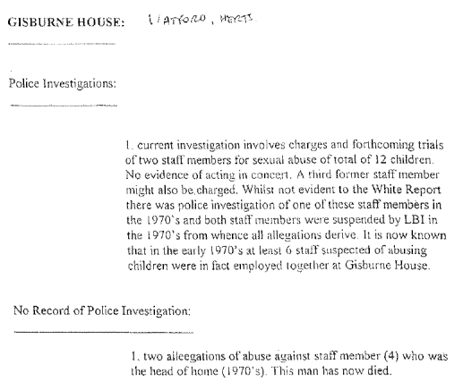 Responses to ISN from police following the Operation redrail2 report provided the following police information about Gisburne House in the 70s and 80s