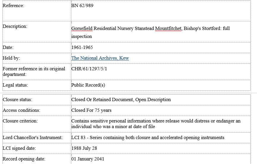 Gorsefield was run by the London County Council and records 1961-5 are in the London Metropolitan Archives (Ref: LCC/CH/E/G0R/02)