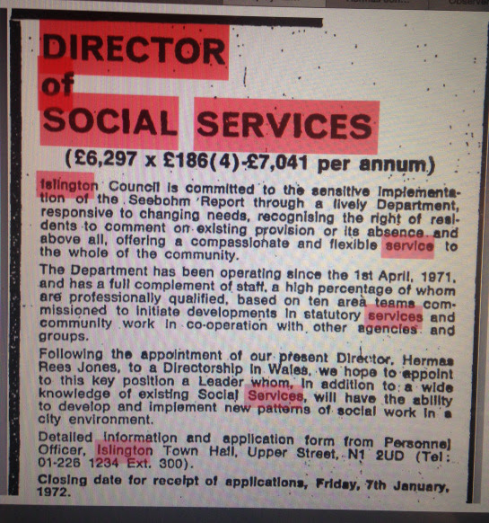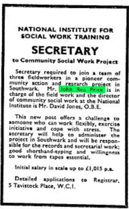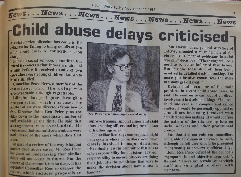John Rea Price was Director of Social Services in Islington from 1972-1990.