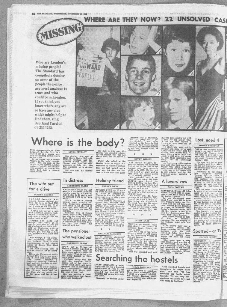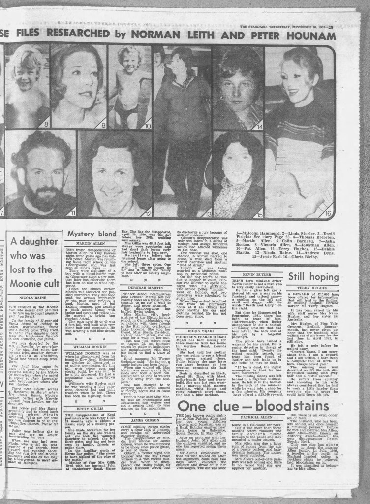 Martin Allen and Tommy Brereton were both included in an Evening Standard feature on ‘London’s missing people’ in November 1982. (below)