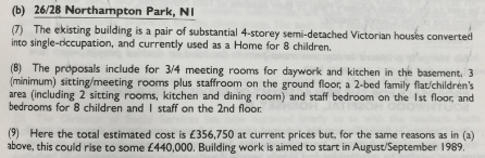 1988: 9 children lived at the home. At the time of a fire there were 6 children and 2 staff in the building ( Islington Gazette: 4.9.87)