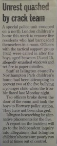 There were serious disturbances – reported in the local media in the early 90s. In 1993 one former staff member is quoted in the Islington Gazette as saying the police are called almost every night. She said the home did not used to be like that.