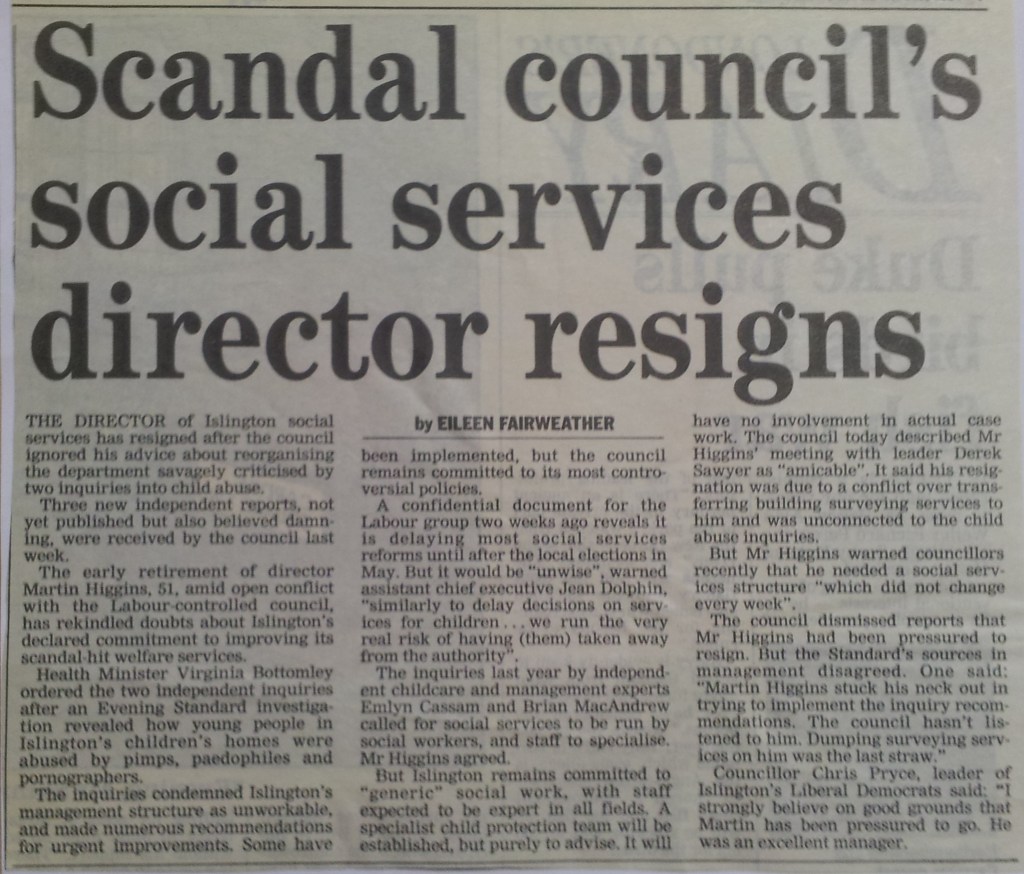 ‘Scandal council’s social services director resigns’ Evening Standard, 22nd February 1994 Share this: Click to share on X (Opens in new window) X Click to share on Facebook (Opens in new window) Facebook Click to share on Reddit (Opens in new window) Reddit Click to share on Pinterest (Opens in new window) Pinterest Click to share on WhatsApp (Opens in new window) WhatsApp Like Loading...