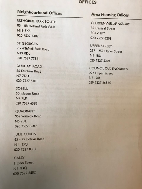 In the mid 80s, Islington introduced 24 Neighbourhoods as an innovative approach to community politics and provision of local services from Neighbourhood offices including Housing, Social Services and Environmental Health needs.