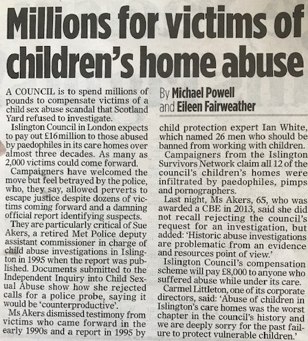 ‘Children’s home scandal: care abuse victims to get payout’ Islington Tribune, 12th March 2021