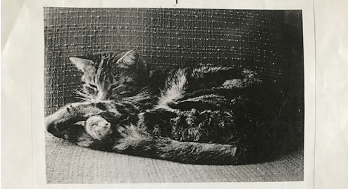 “Long suffering tabby cat who sat on new children’s knees, was dressed up in dolls clothes and wheeled about“
