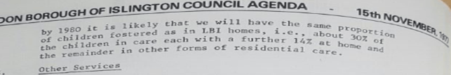 “We will continue to develop our fostering services and by 1980 it is likely that we will have the same proportion of children fostered as in LBI homes”