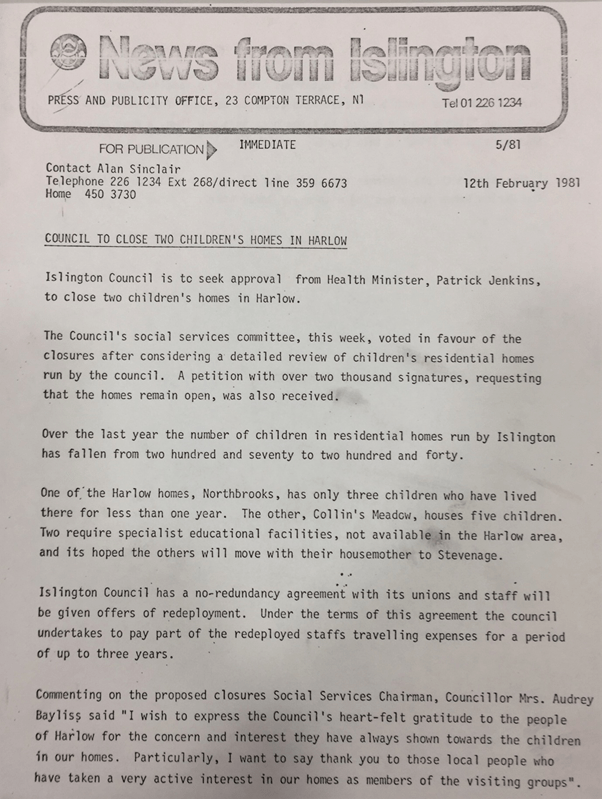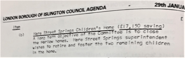 As with the other Harlow homes – residential care outside of Islington was being closed, brought into the Borough and reduced in line with an increase in fostering.