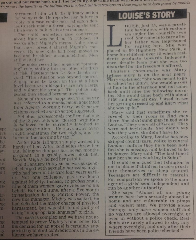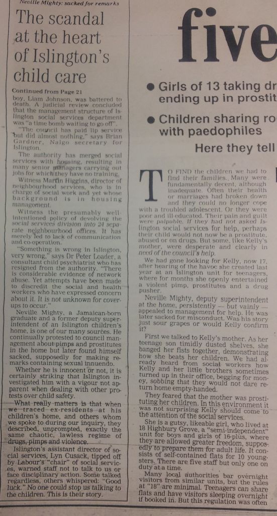 The scandal at the heart of child care Evening Standard, 6th October 1992 by Eileen Fairweather and Stewart Payne Share this: Click to share on X (Opens in new window) X Click to share on Facebook (Opens in new window) Facebook Click to share on Reddit (Opens in new window) Reddit Click to share on Pinterest (Opens in new window) Pinterest Click to share on WhatsApp (Opens in new window) WhatsApp Like Loading...