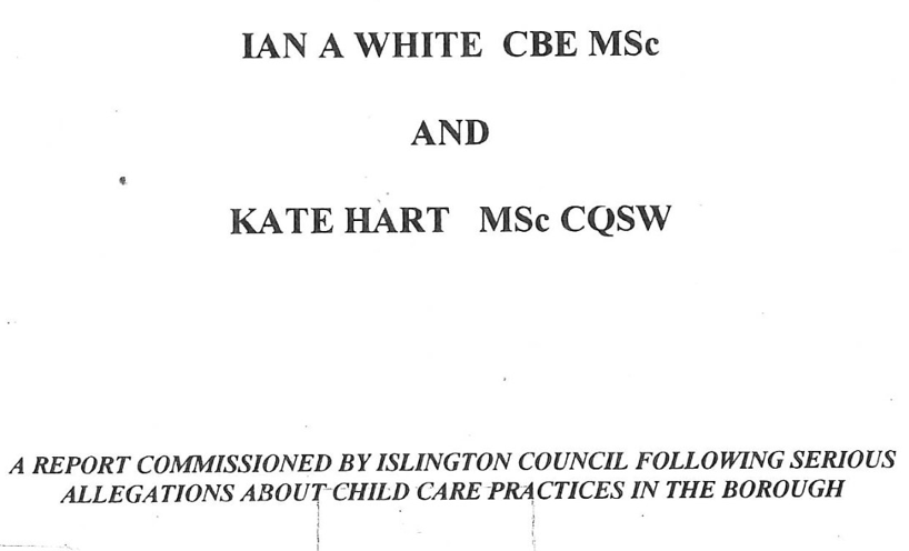 Ian White and Kate Hart were the authors of the final Islington Inquiry in 1995. An Addendum to this Report named 32 staff from Islington who should not be working with children. This list remains confidential to Islington Council.