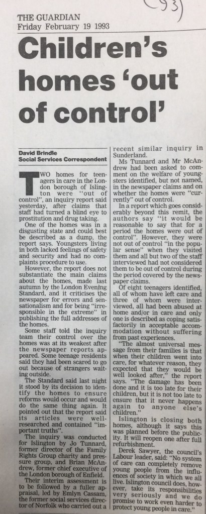 1993: Mike Betts (Islington social work manager) report on the state of the children’s homes