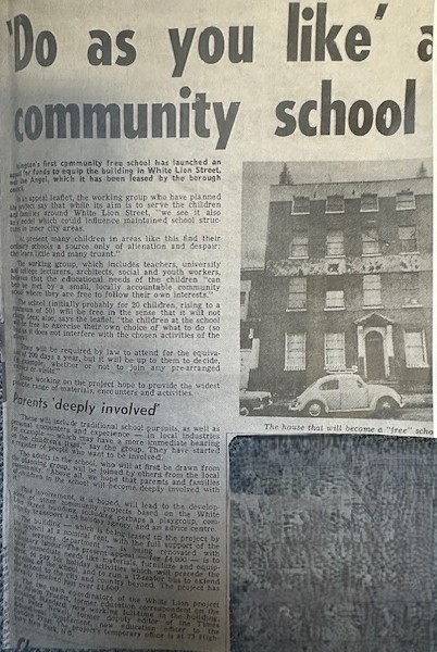 Many Islington Survivors attended the White Lion Free School and we have heard varied accounts of what that experience was like. The general criteria for getting a place at the school were that children lived within the catchment area – so they were local Islington children. Those of school age were mainly from poor working class backgrounds.For children already received into care following problems at their family home, it was at times difficult to cope with their parents having open access to the school as was the school policy. It opened in 1972 and Peter Newell was the Founder. He had been deputy editor of the Times Educational Supplement. and then became education officer at the National Council of Civil Liberties. Between 1972 and 1986, 261 children attended the school but of these 105 went only to the nursery.